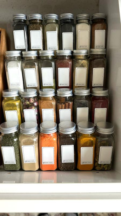 هر پک شامل👇🏼 🔸۱۲عدد شیشه مکارتی با درب کانتینری (ارتفاع شیشه ۱۲سانت و قطر ۴سانت) 🔸۱۲عدد سری نمکپاش سلیکونی 🔸دو عدد استند اکرولیک (طول استند ۳۰سانت) (روی هر استند ۶عدد شیشه جا میگیرد) 🔸یک بسته لیبل۳۰عددی: .
